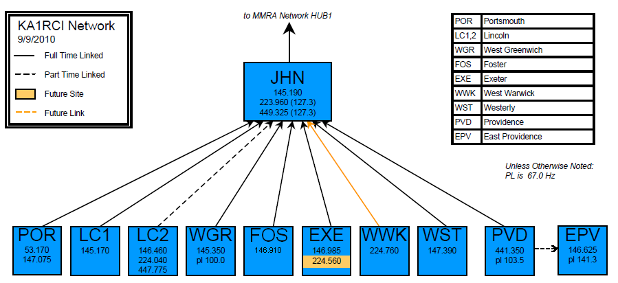 KA1RCI operates 17 repeaters which are linked to a main HUB in Johnston, RI.